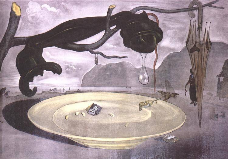 Een van Dalí’s beroemdste schilderijen. Drie smeltende zakhorloges liggen in een dor landschap, geïnspireerd op de uitzichten bij Port Lligat.
